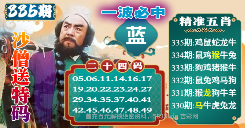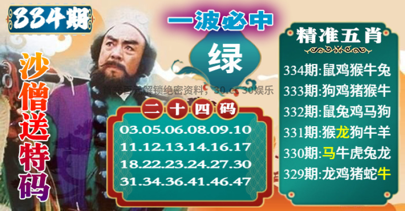 | 334期:七肖 | 羊鸡猴狗猪马兔 | 开:猴46中 |