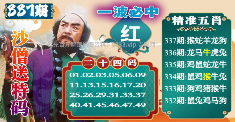 | 334期:五肖 | 羊鸡猴狗猪 | 开:猴46中 |
