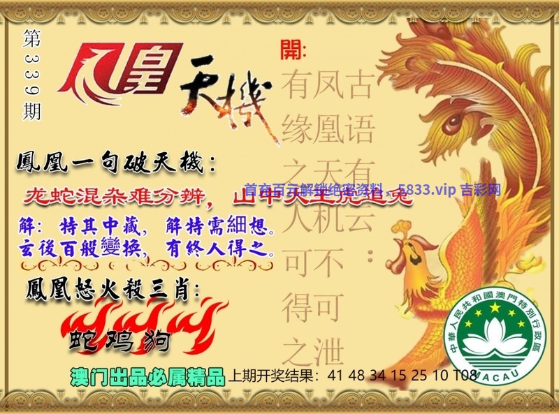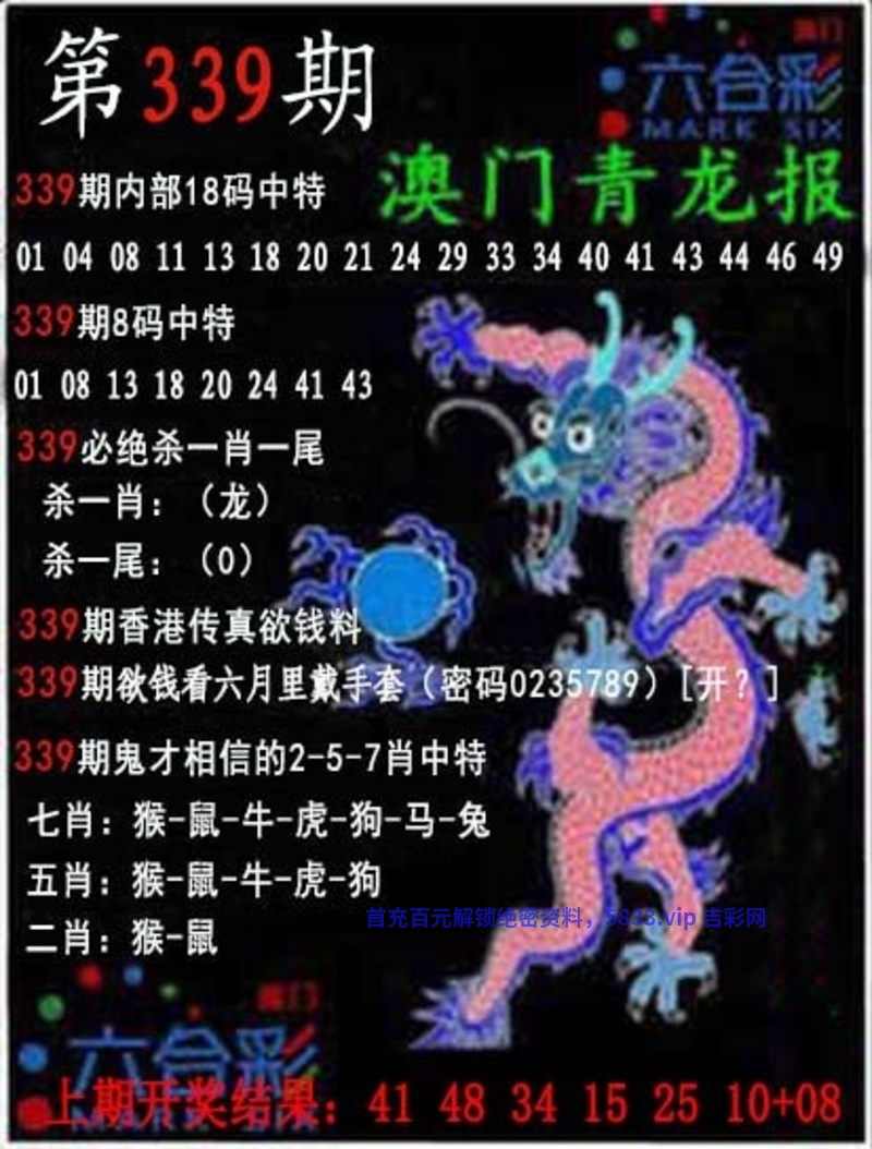 | 339期:五肖 | 羊马蛇牛龙 | 开:發00中 |